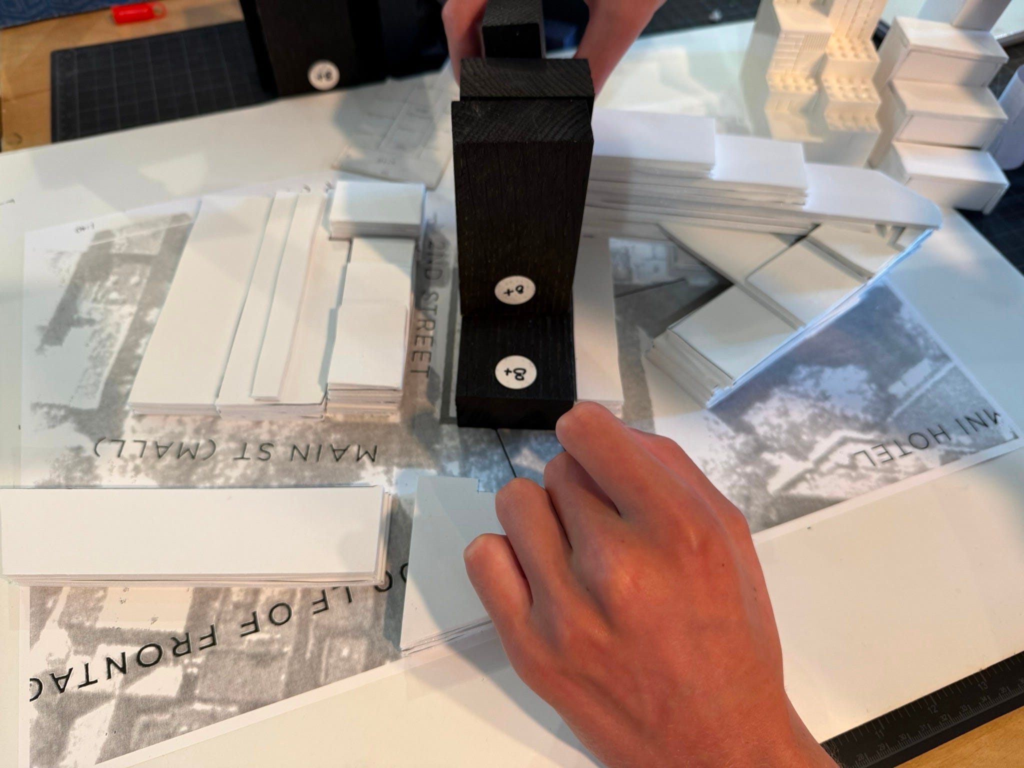 Working closely with Senior Designer David Timmerman, AIA, Henry embarked on a design exercise of his own: developing a concept for a multi-story tower in downtown Charlottesville. Through sketching, modeling, and daily design discussions, he experienced the various phases of architectural design firsthand. At the conclusion of his internship, Henry presented his work to the full team, demonstrating creativity, curiosity, and enthusiasm for design.