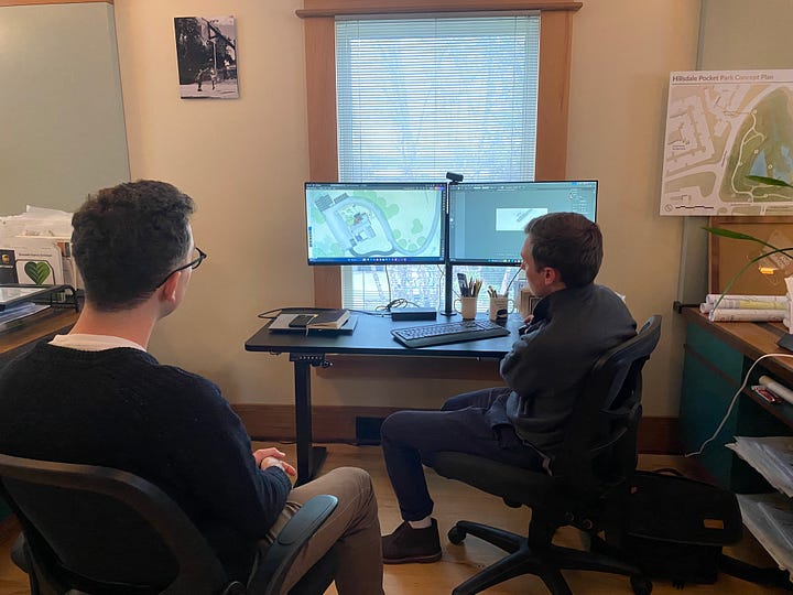 The day wrapped up with a portfolio review attended by several BRW team members. We didn’t just talk about aesthetics or presentation. We talked about narrative and discussed how my projects connect across scales and how my tendency to integrate systems, user experience, and landscape shapes the way I design. The feedback I received was practical and generous, and it helped me see ways to better communicate what drives my work.
